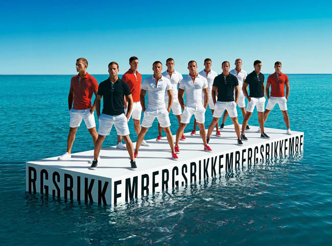 The clothes design of Dirk Bikkermbergs are very colorful , youth, comfortable and resistant materials, to suit the male body to perfection, with a predominant colors such as navy blue, white or red. This well-known Belgian firm, wanted to surprise everyone using a fun and original campaign, placing the eleven players on a platform surrounded by water, which look palm with designer clothes.